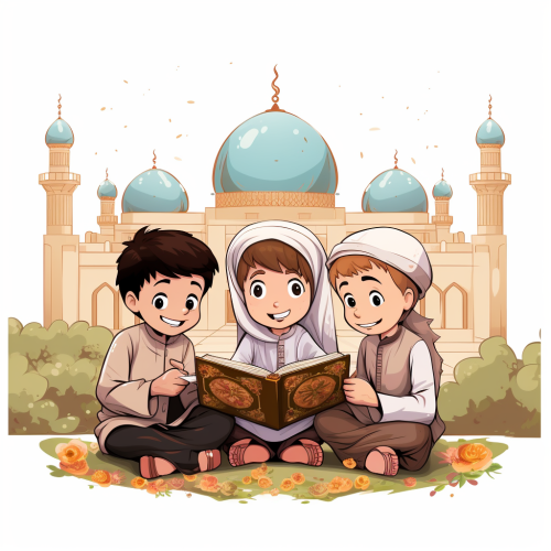Illustration of two 7 year old girls smiling and readingin day light. have long brown hair tied in pigtails. An open book on their laps displays colorful illustrations. Bright colors, vibrant cartoon style, cute expressions, a magical atmosphere, sparkling effects, and soft lighting. --ar 5:8 --v 6.1