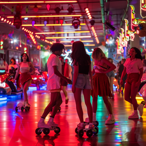 people enjoying a Ferrari and Peroni branded roller disco