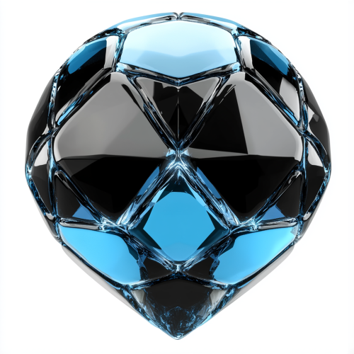 giant blue and black diamond. top of diamond is a soccer ball. it needs to look like the ball is on top of the diamond but they are fused tgether high resolution. image is centered. no background. blank backgrond. image is in frame. highly defined
