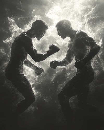 two people fighting each other punches flying, high contrast backlit desaturated extreme close-up on face and body 400mm photorealistic hyper realistic Thermograph --v 6.1 --ar 4:5 --s 750 --style raw