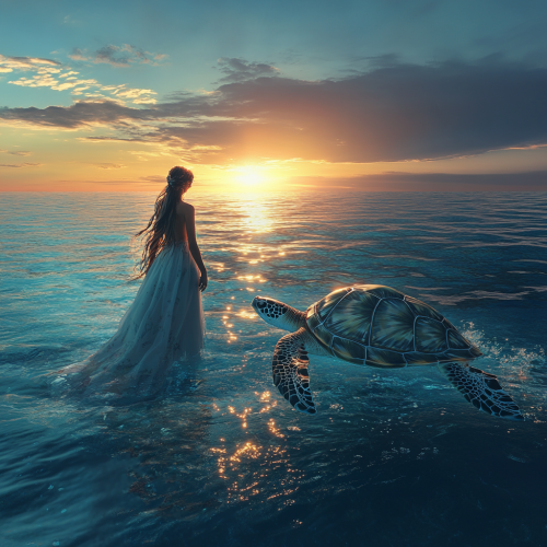 A beautiful young woman in her 20s, covered in intricate tattoos, walking up from the ocean onto a sandy beach. Her tattoos feature a mix of detailed designs, flowing over her arms, shoulders, and parts of her torso, each one telling a story. Water droplets glisten on her skin as the warm, golden sunlight enhances the detail of her tattoos, giving them a vibrant and expressive look. Her expression is peaceful and content, fully immersed in the tranquil beach setting. The background shows a quiet shoreline with gentle waves and soft sand stretching into the distance. The lighting is soft and cinematic, either early morning or late afternoon, capturing a serene and almost ethereal atmosphere. –v 5 –ar 4:5 –style photorealistic –mood peaceful and expressive –lighting warm and golden --ar 16:9