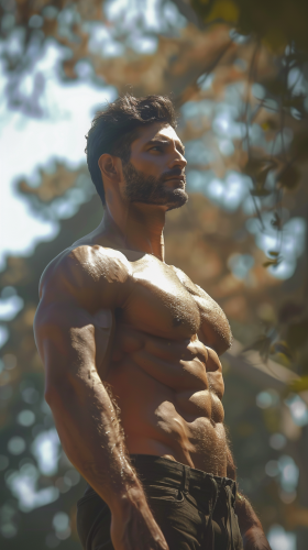 The ultimate alpha male. He has an incredibly sculpted body and is outside on a sunny day full HD --ar 9:16