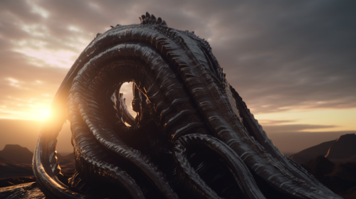 H. R. Giger inspired alien tentacle, single tentacle in frame, desert in the background, photorealistic, side shot, sunset background, photography, photorealistic, 4K resolution, high detail --ar 16:9 --v 5.0