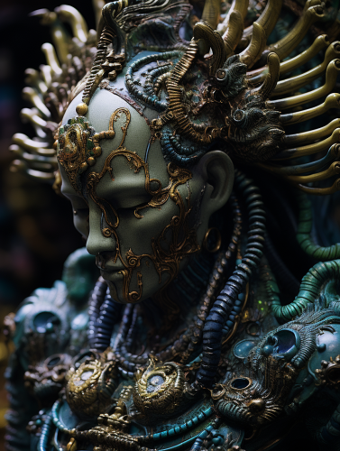 close up of buddha statue meditating spirit etheral psychadelic hr giger style alien biomech --ar 3:4 --style raw