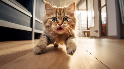 Ultra-realistic Cat Playing with Ball in Cozy Home