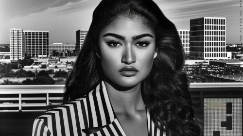 Fashion shoot for clothes, a well dressed female lawyer in a wintercoat, is standing with boots on a deserted beach , sunny weather, tropical, 65 mm, photorealistic, fashion photo shoot for Vogue magasine, uhd image, 8k, in the style of saturated colorism, --ar 7:4 --style raw --stylize 50 --v 6.1