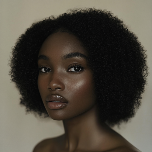 a photo-realistic portrait of a beautiful woman facing forward, looking directly at the camera ultra-realistic, real photo, realistic voluminous lips, hair with pores and moisture, curly hair --v 6.1