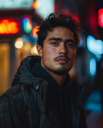 a handsome Latino man, dystopian, lost temple, sunset, low key lighting::5.5 dimmer stylisation, lone colour background, dim colours, accent lights, volumetric light, PRO photo RGB, Chromatic Aberration, Post processing, art and design, sci-fi, fashion stylisation, futuristic, realistic render:: --ar 4:5 --stylize 300 --c 10 --v 6.0