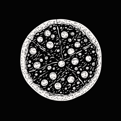 a black and white line vector illustraion of pizza. low detailed. white lines on black background. minimalist