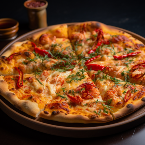 cauliflower crust pizza. Dark background. good lighting on food. close up image. --stylize 0 --ar 16:9
