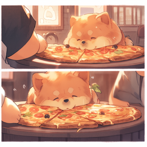 Show a series of progressively pizza boxes, each depicting an hour on a clock. The box for the late hours (like 2 am, 3 am) is prominently open, but it's empty or has wide-open eyes inside.