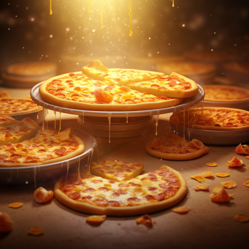empty pizza trays with only the pizza crust left in a hole in the style of rendered in cinema4d, mandy disher, golden light, uhd image, victor nizovtsev, farm security administration aesthetics, lively illustrations