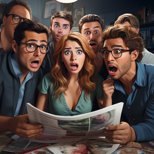 a group of young people receiving terrible news, they all look horrified --s 250
