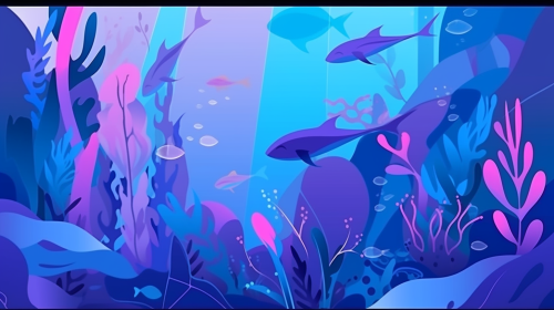 3d animation, a beautiful cartoon underwater, blue scene with fishes in center, in the style of three --ar 16:9 --s 750
