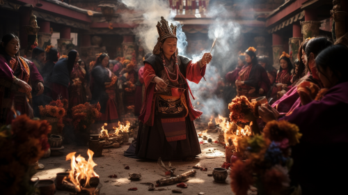 Tibetan cultural traditions and religious rituals under the shadow of restrictions --ar 16:9 --v 5.2