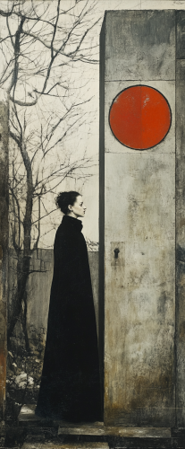 editorial photography of a woman in front of a giant brutalist earthship::2.5 cinematic, overcast softlight::2.5 suprematism by Wassily Kandinsky::3 symmetry::-2.5 --chaos 10 --ar 5:12 --style raw