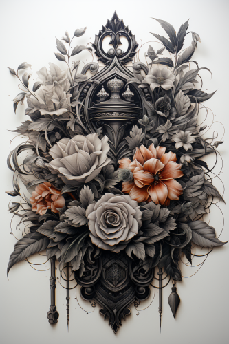 Angry Dinosaur, hip hop style, Ambigram tatoo style, Abstract ink style, Blackwork Geometric, Realism, bandage, madness-inducing, danger atmosphere, abstract expressionism, lyrical abstraction, Symbolism, macabre, surrealizm, Graffuturism, Street Art Sculpture, white background, editorial photography, photorealism, --no skin --ar 2:3 --v 5.2