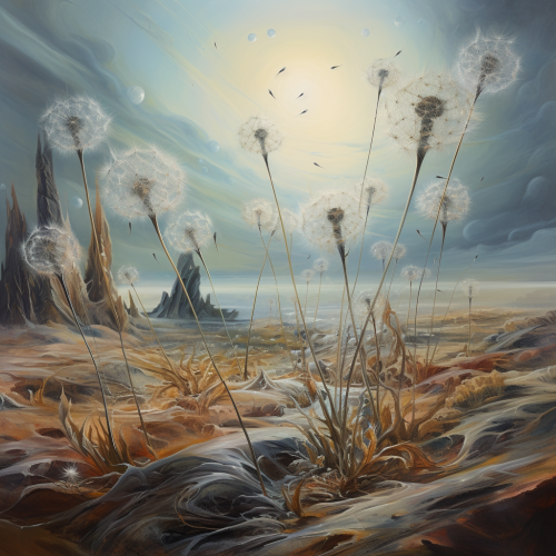 Unique and otherworldly beings in white oil painting.