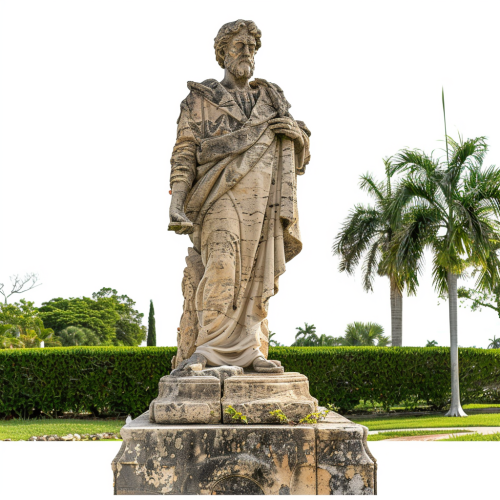 wider than tall oolitic limestone statue sign on an angle thats left blank to serve as a welcome sigh in front of a south florida park png white background