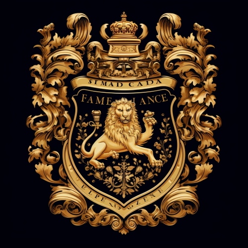 a coat of arms. In the shield two ears, scalp, tuning fork. Heraldry style. --ar 1:1 --v 6.0