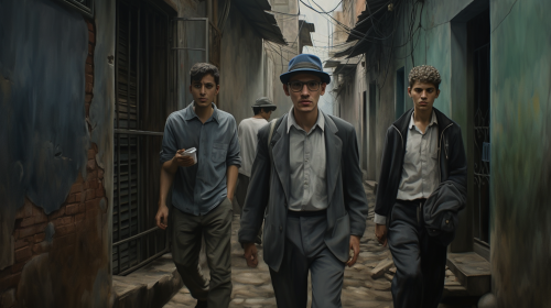 chicos rapeando en un callejon , dia gris , filtro tenue , argentina ultra realista --ar 16:9