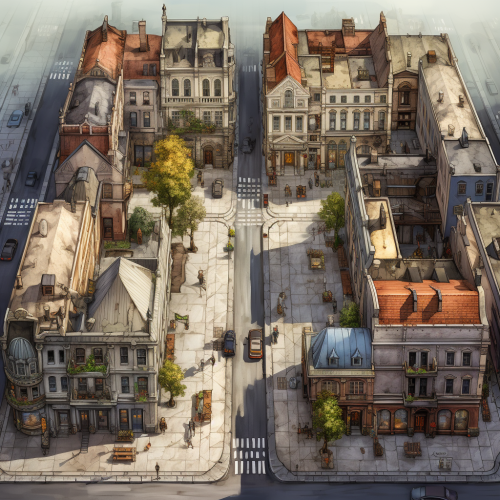 a big and dense city district seen from drone or airplane, like 10-20 square kilometers, yellow details, cinematic look