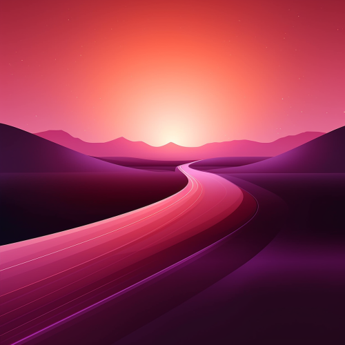 vector flat background, soft dark pink with orange abstract gradient geometric shape, a road path in gradient abstract toward lower left corner, shine and smooth