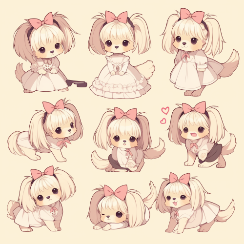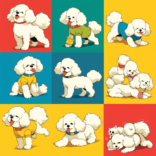 9 divisions, background white, full body, pop art, Various poses, Various movements and actions,facial expressions (joy, anger, sadness, and humor),Simple design, simplicity, Toy Poodle --niji 6