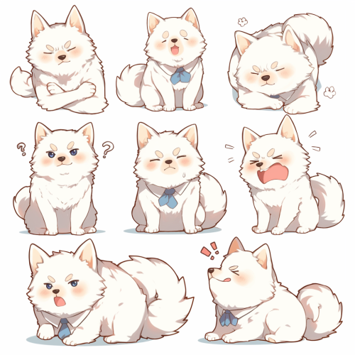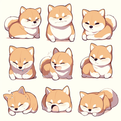 9 divisions, background white, full body, simple coloring, simple line drawing, Various poses, Various movements and actions,facial expressions (Pain, sadness, feeling unwell, fatigue),Simple design, shibainu,chibi --niji 6