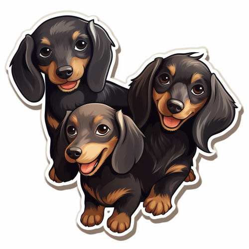 Sticker design cute friendly happy black flat body three dachshund dogs doing 3 different actions, Architecture, Portrait photography, Anime, Exciting, poster, Cinema, painting, Product Products, Images, 2D Drawings, Illustrations, Wildlife Photography, Fashion