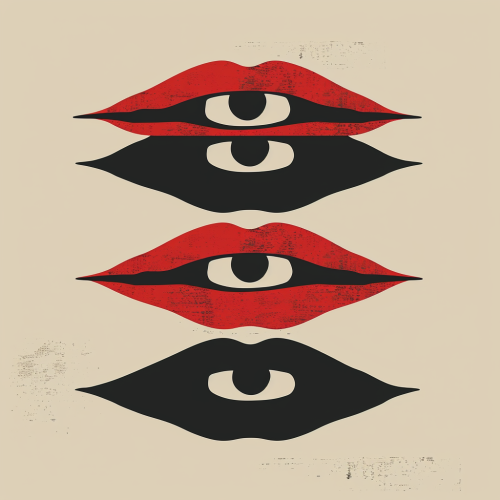 A minimal poster of A random freak face made up of many lips with eyes instead of a mouth , abstract minimalism art, vector art, international typographic style, inspired by Joseph Muller Brock --v 6.0 --style raw