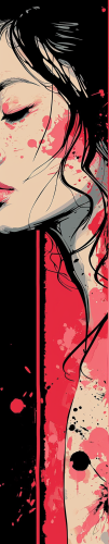 geisha , remove poster, american art icon design | vector art, in the style of etam cru, close up, todd mcfarlane, unapologetic grit, crimson, black and pink , intense close-ups, --ar 2:10 --v 6.0 --s 250