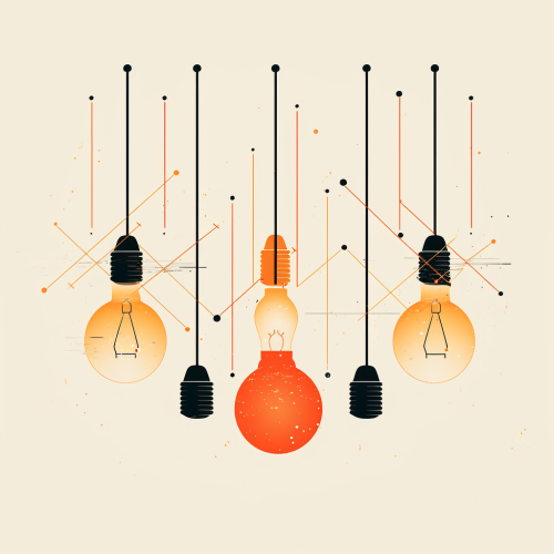 city with huge lightbulbs as buildings, graphic art, minimalist, vector illustration, poster