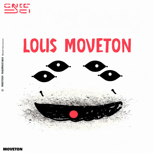 A minimal freak poster of A random face made up of many lips with eyes instead of a mouth , abstract minimalism art, vector art, international typographic style, with large text of words " LOUIS MOVETON " inspired by Leigh Bagley --v 6.0 --s 50