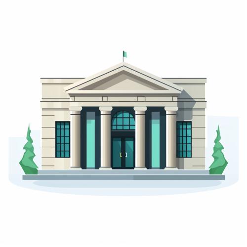 Create a minimalist icon representing 'Banking Solutions' for a website. Use a simple symbol of a bank building or a dollar sign encircled in a thin line. Keep the lines very thin, flat, and clean, with a slight accent in red or gray for a modern, polished appearance. Ensure the design is extremely minimalist and professional.