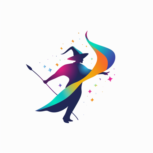 flat vector logo, gradient, magician, crystal, simple, minimal, white background