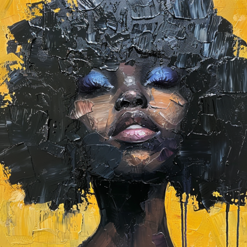 Tim Okamura's painting depicting beautiful afro American child --ar 2:3 --v 6.0