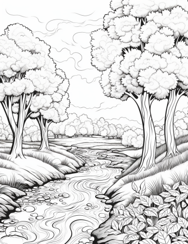 coloring pages for kids, auntumn view, cartoon style, thick lines, low details, black and white, no shading --ar 17:22 --v 5.2