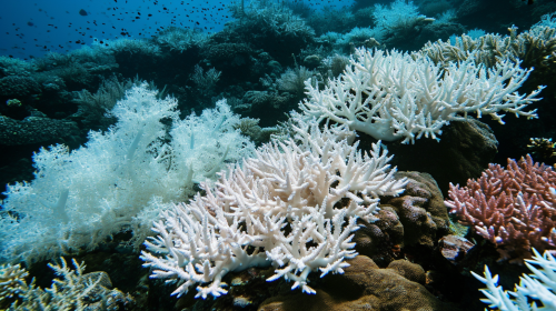 small and simple image; coral bleaching, all coral are white --ar 16:9 --v 6.0 --style raw
