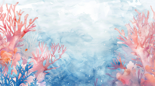 coral themes background in watercolour --ar 16:9