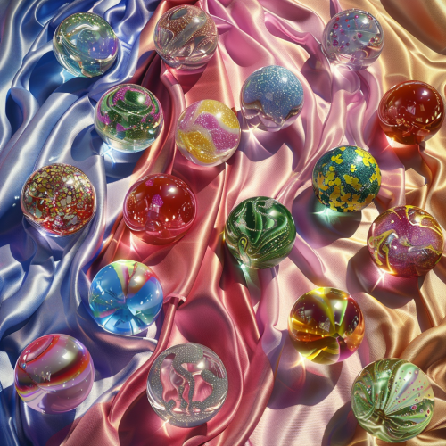 a beutiful array of crystal balls in all colours of various crystalls with stunning cloth background, hyper realistic