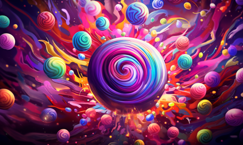 clipart of purple skittle style candy exploding with lots of trippy very bright colors --ar 5:3 --v 5.2