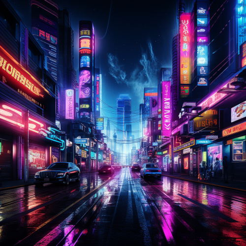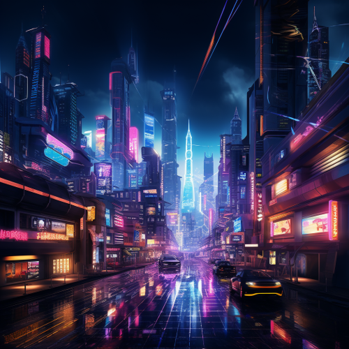 futuristic cityscape, neon lights reflecting on glass buildings, rainy street, ultra-realistic and sharp details, cyberpunk style --v 6.1 --ar 16:9 --q 2 --stylize 1000 --chaos 90 --tile
