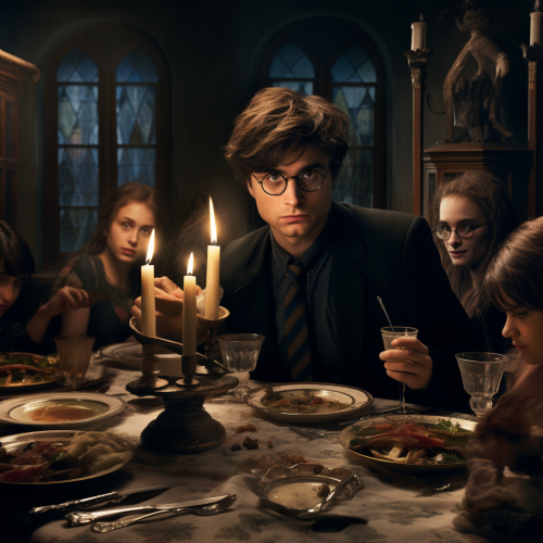 a 1970's grotesque family thanksgiving dinner party with scary looking food. Uncanny valley, 1970s, hyperrealistic, cinematic, photorealistic, hammer horror style. --ar 24:36 --v 5.2 --s 250