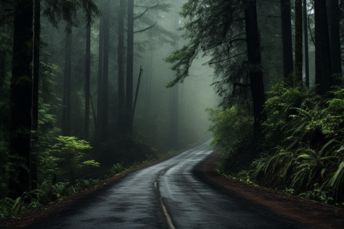 a clearing in the middle of dense green trees with hints of yellow, orange and red leaves just starting to turn colors at the beginning of autumn, shrouded in mist, with a traditional Japanese-style painting. The composition is symmetrical and balanced, using oil paint on canvas to create soft lighting effects and delicate colors. In the background of the deep forest scenery, there's an atmosphere full of mystery. --v 6.1 --ar 16:9