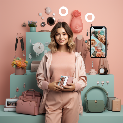 Create a high-resolution image of a modern beauty store showcasing eco-friendly, smart packaging influenced by Gen Z. Display vibrant beauty products with sustainable materials like bamboo and biodegradable plastics, featuring bold designs and visible QR codes. Include a Gen Z shopper scanning a product with a smartphone, showing AR features or product details on the screen. Highlight refillable containers and minimalist packaging, capturing a blend of digital interactivity and sustainability. The scene should feel sleek, modern, and environmentally conscious. --ar 16:9