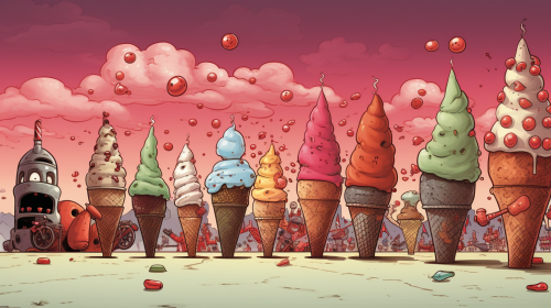 short ice cream cone, filled with chocolate coating, watercolor painting style