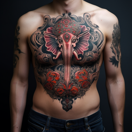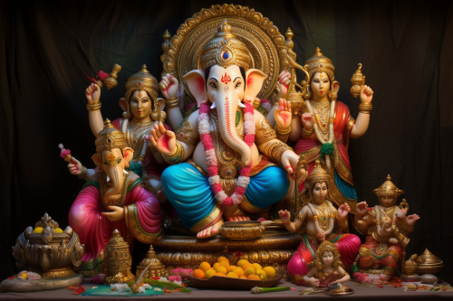 An intricately detailed Lord Ganesha, seated on armchair sofa , rendered in ultra-realistic 32K resolution.