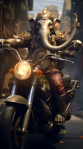 ecstatic dreamscape, lord ganesh lush happy, calm, mixed media --w 10 --ar 4:7 --s 250 --style raw