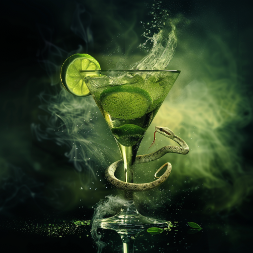 Cocktail glass the lime wedges being engulfed like quick sand in a pit of snakes